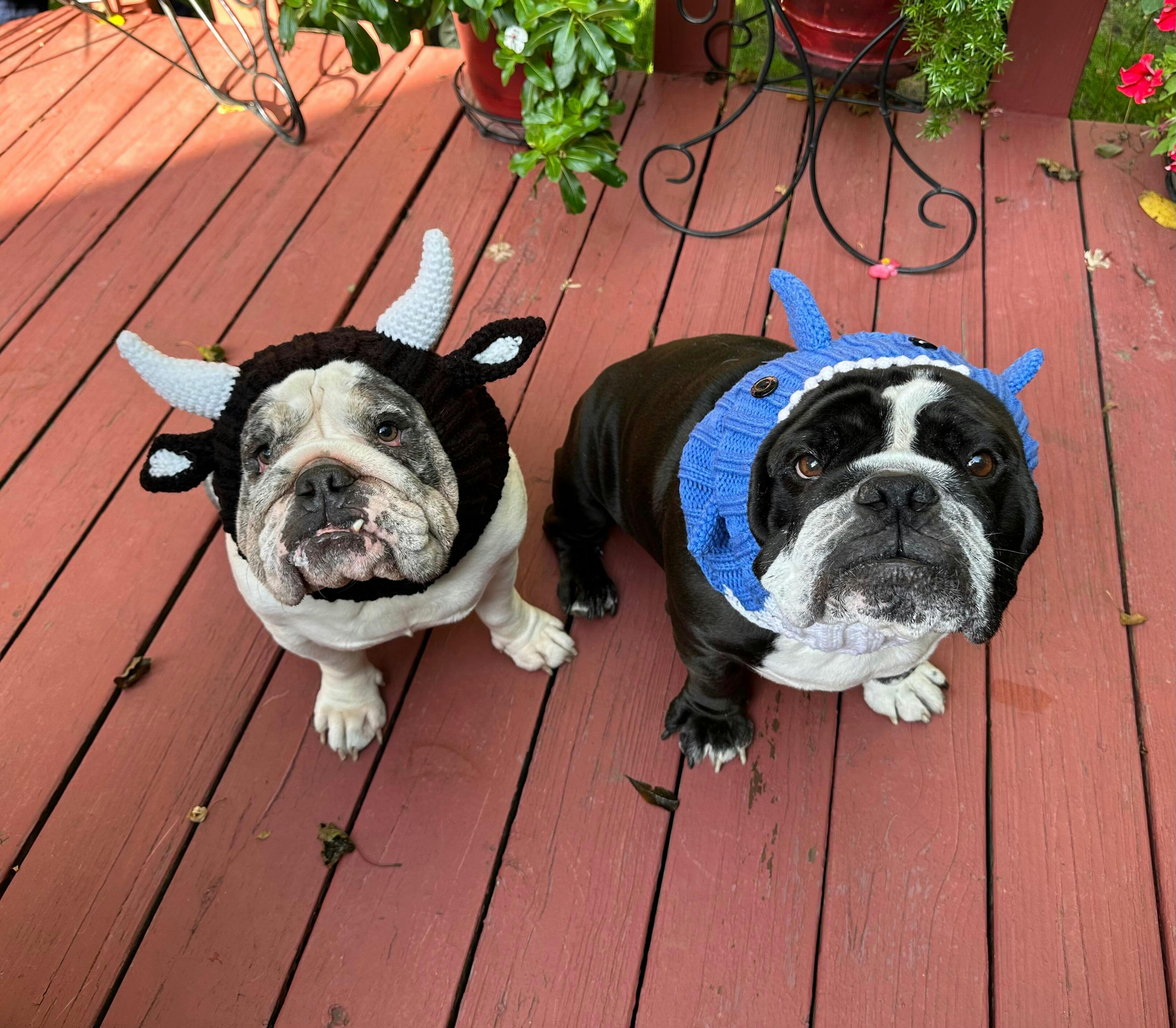 I didn't really think any of my bully babies would let these stay on, but one of mine did and she loves it! They really look to be amazing quality, and with winter coming, I hope I can continue getting them used to it. They are so very cute! I got the bull one, the devil one, and the bat one!