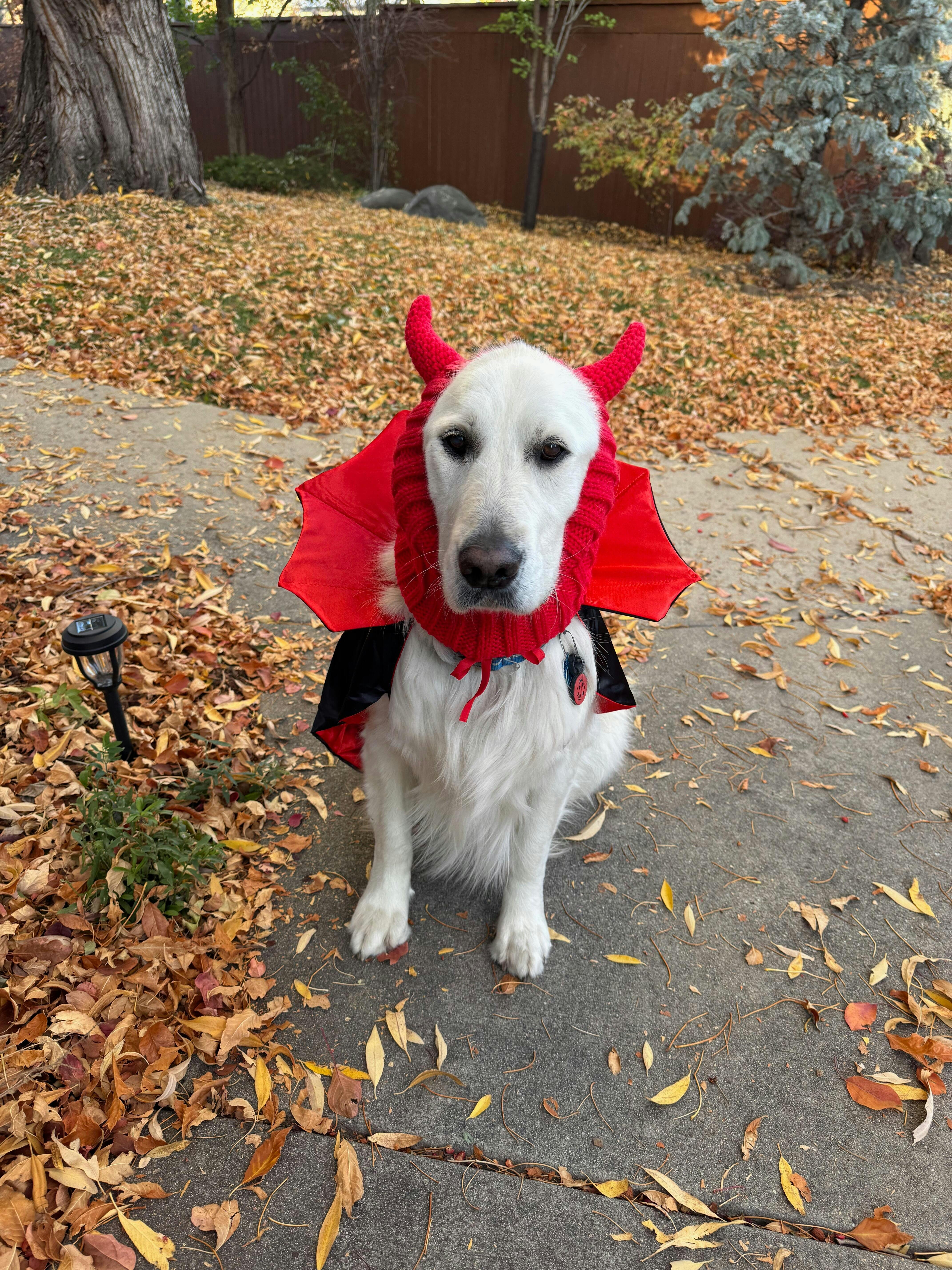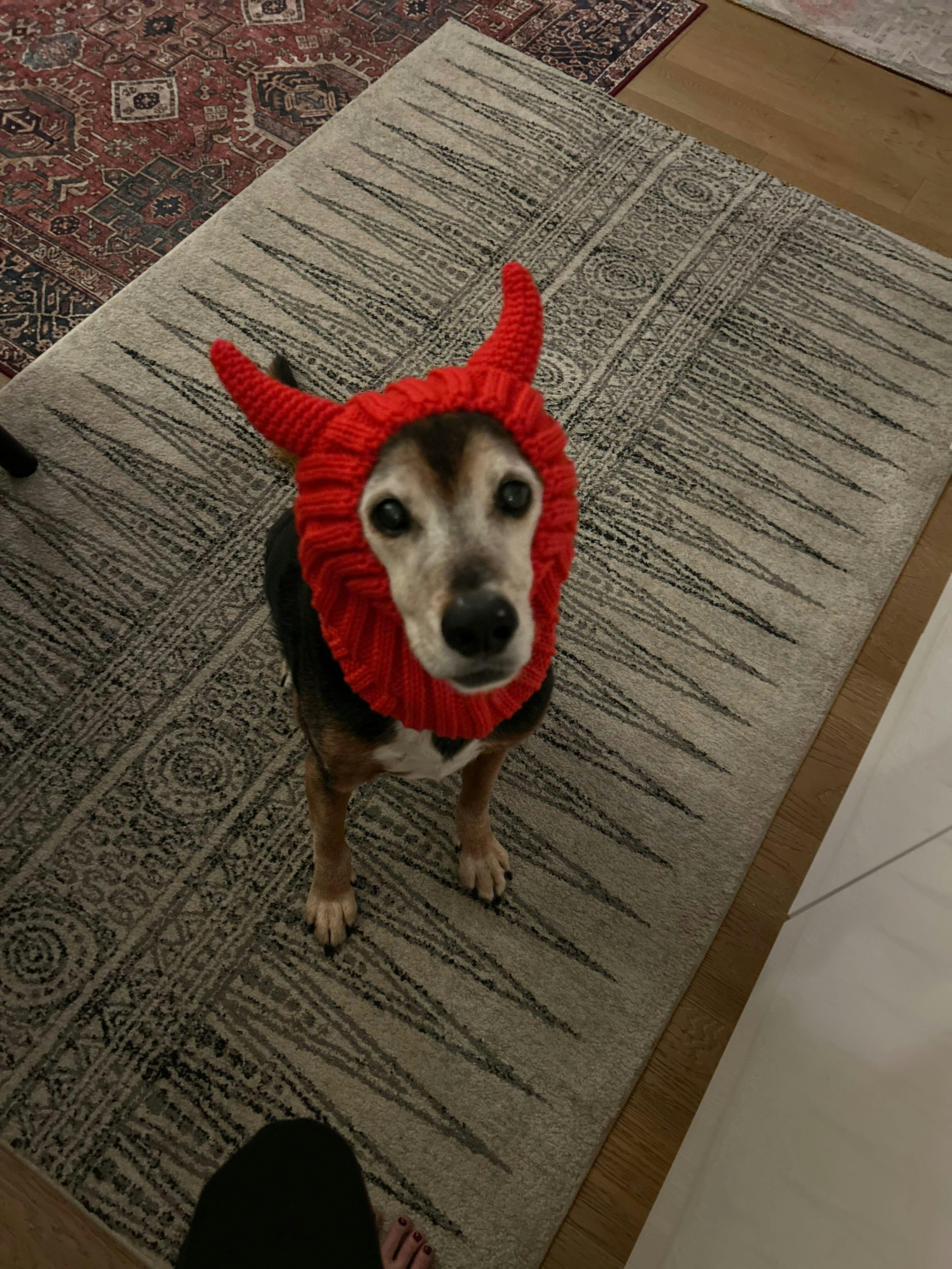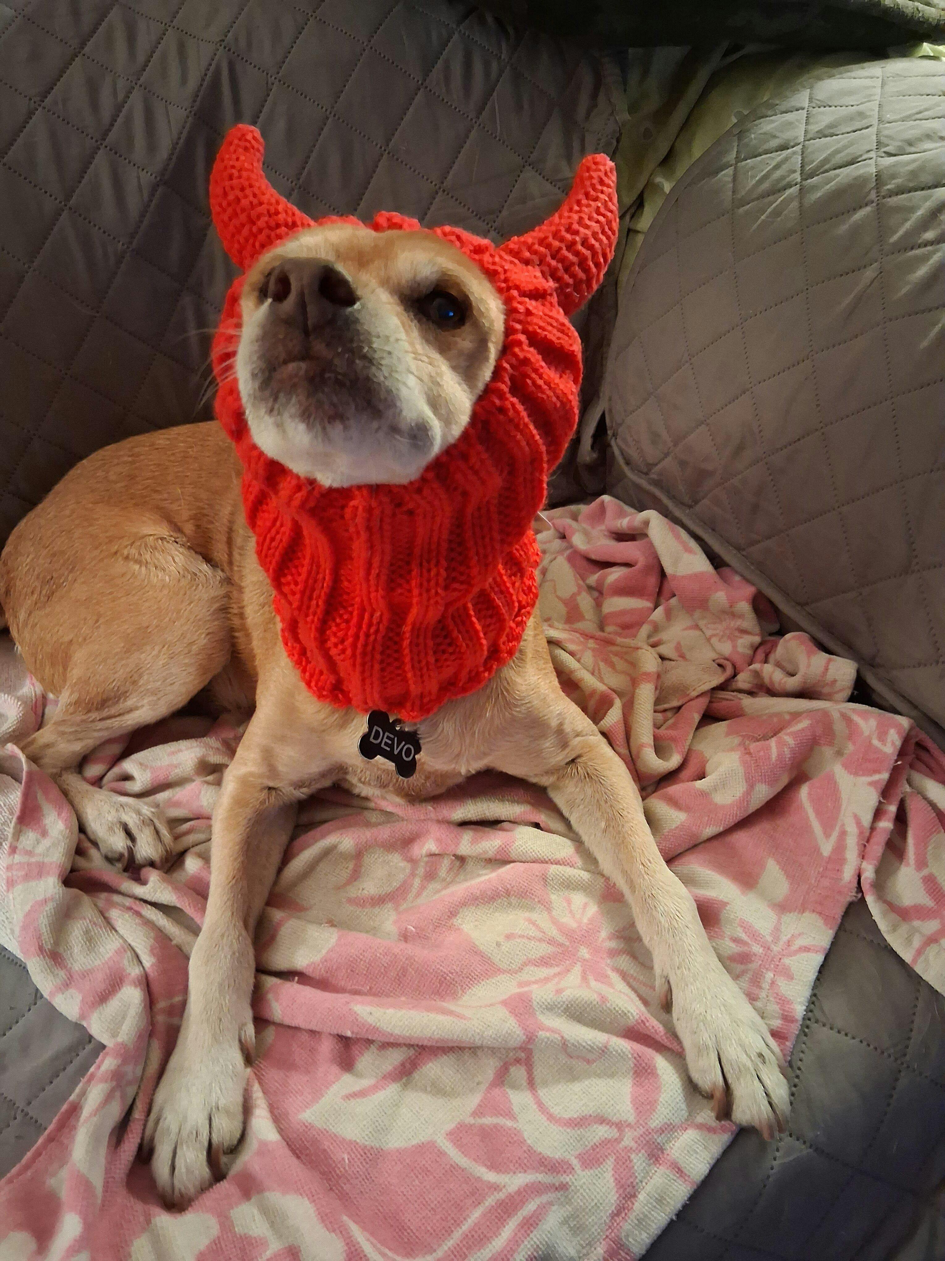 We love our devil snood. Our Devo however, not so much. He'll wear it around his neck but not on his head. He doesn't like this ears covered. Well made totally cute.