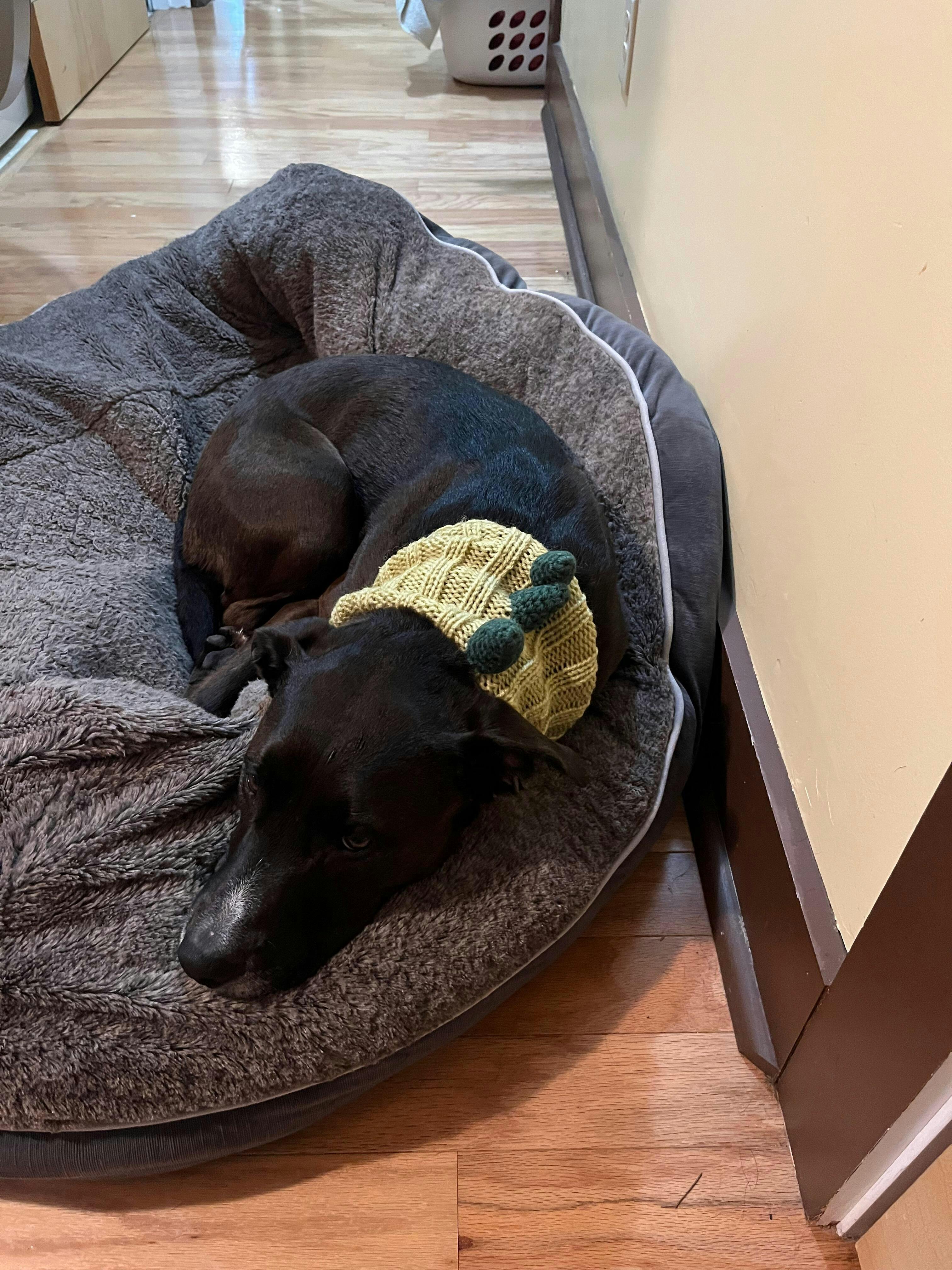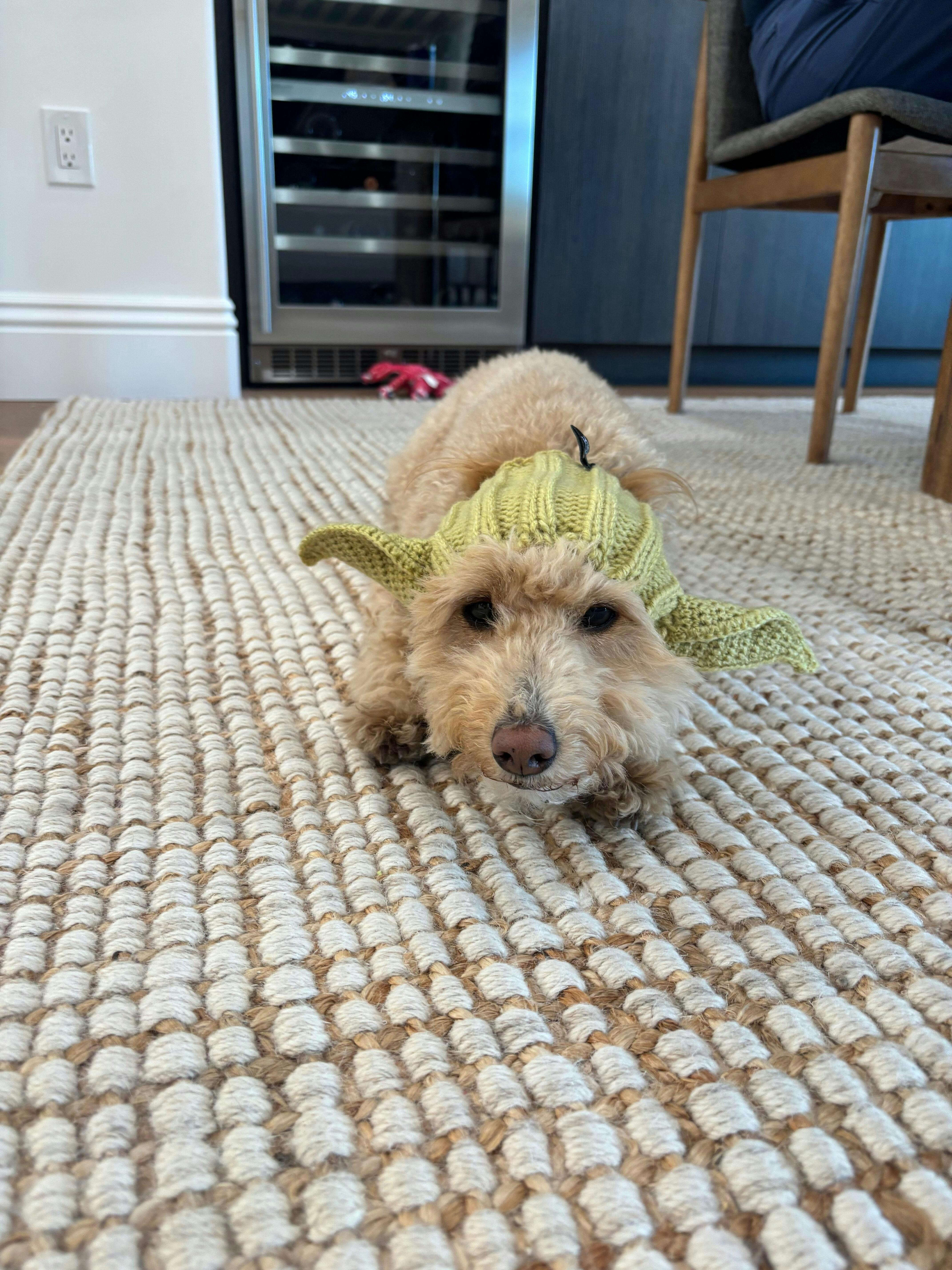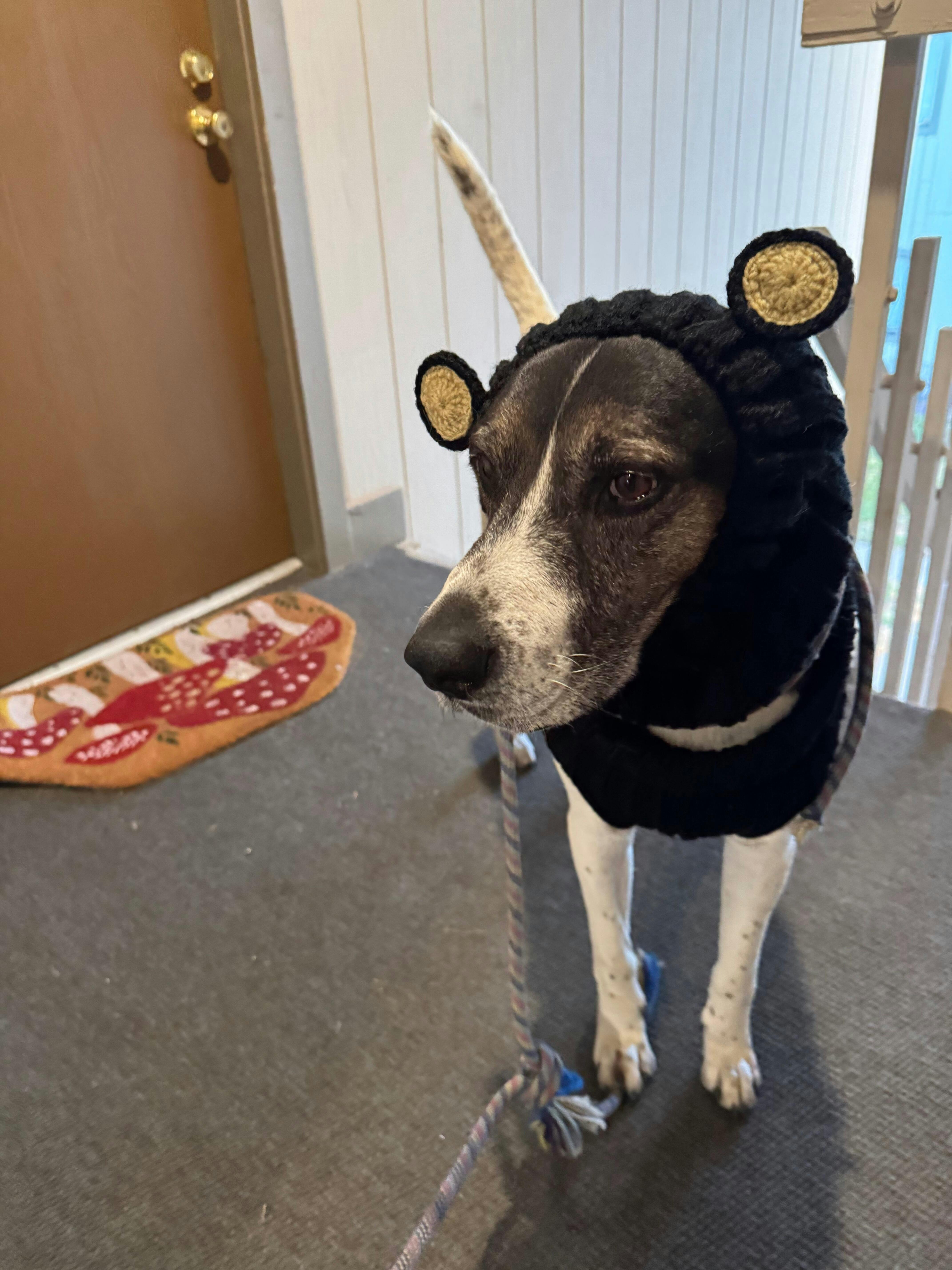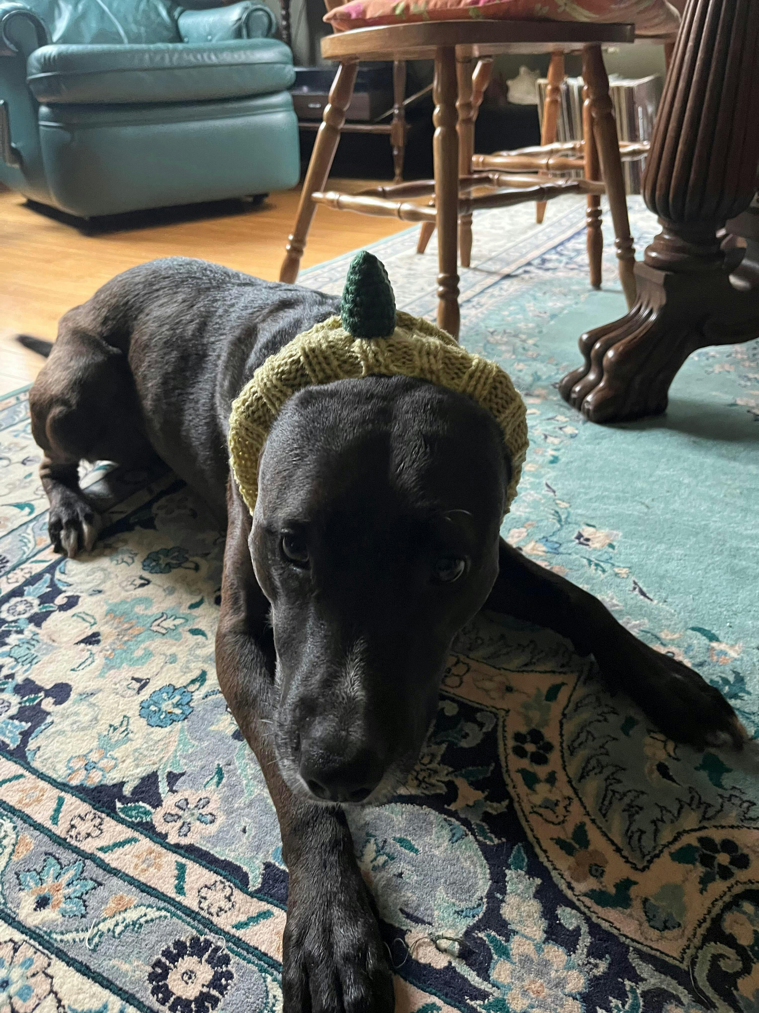 This is the coolest dog hat I've ever seen. It keeps Charley's head and ears warm while we're on our walks.