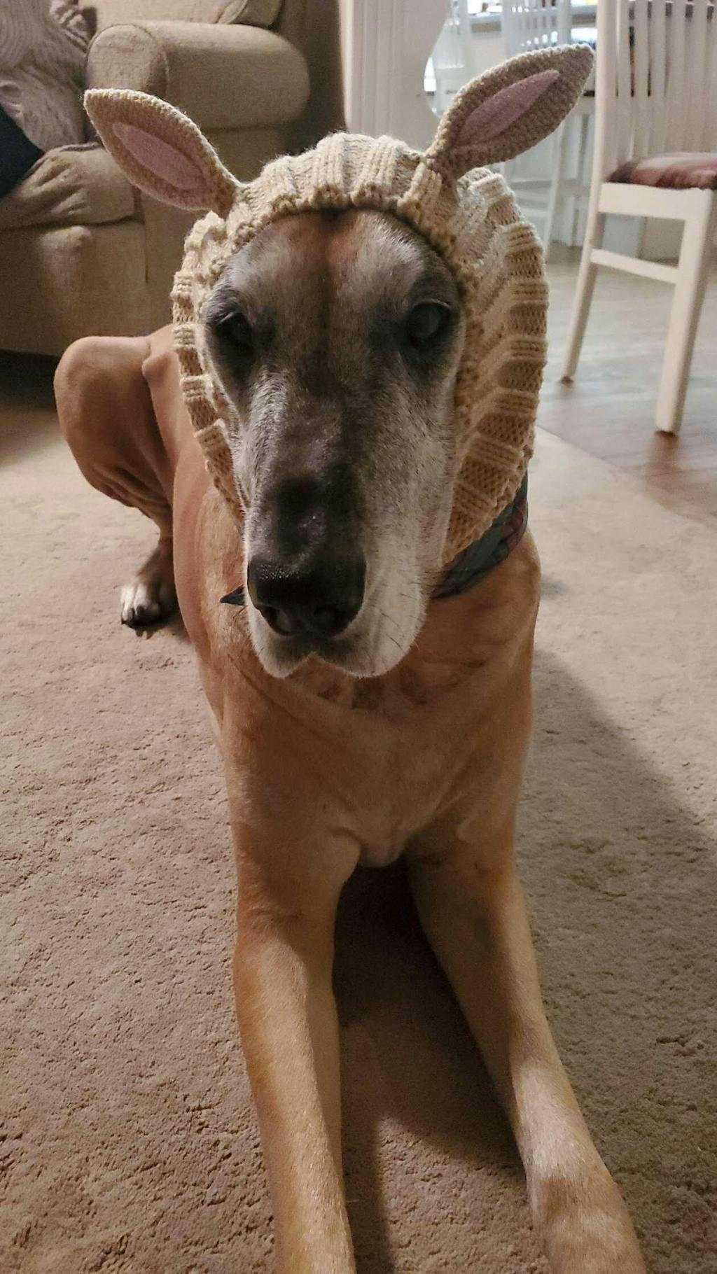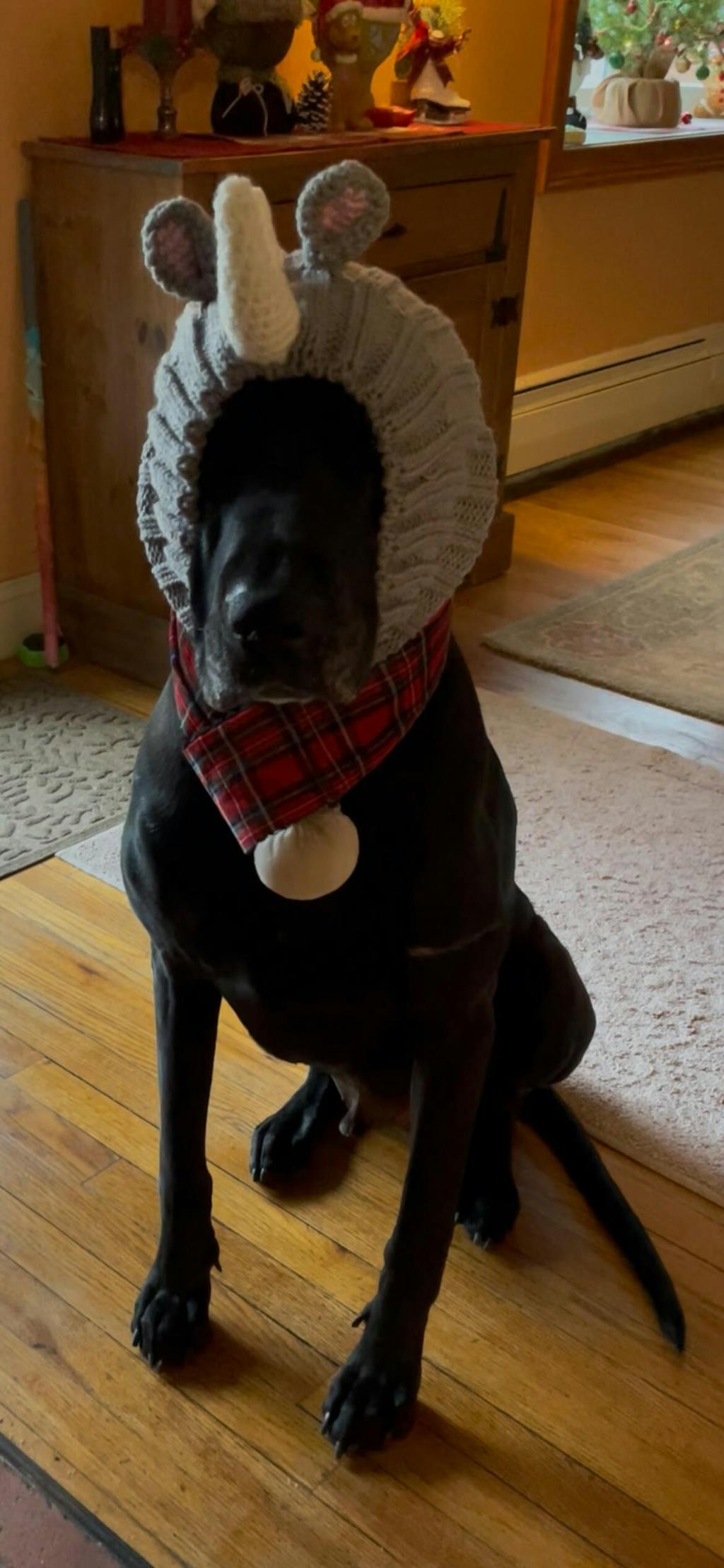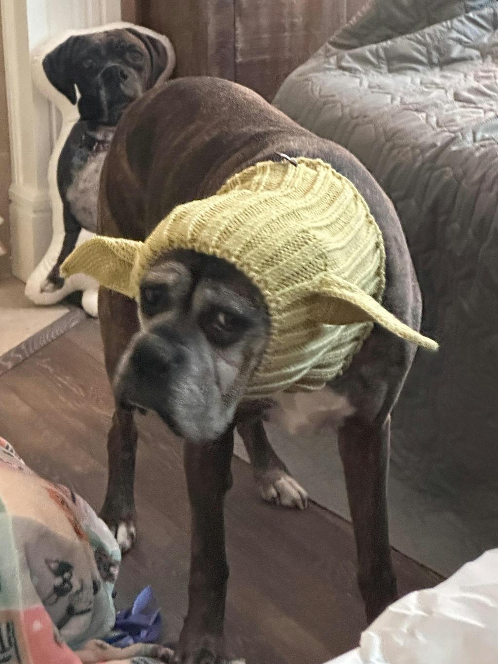 Love this Elf Snood...bringing much merriment and laughs to so many people (and it keeps our pups ears warm in the snow and wind!)