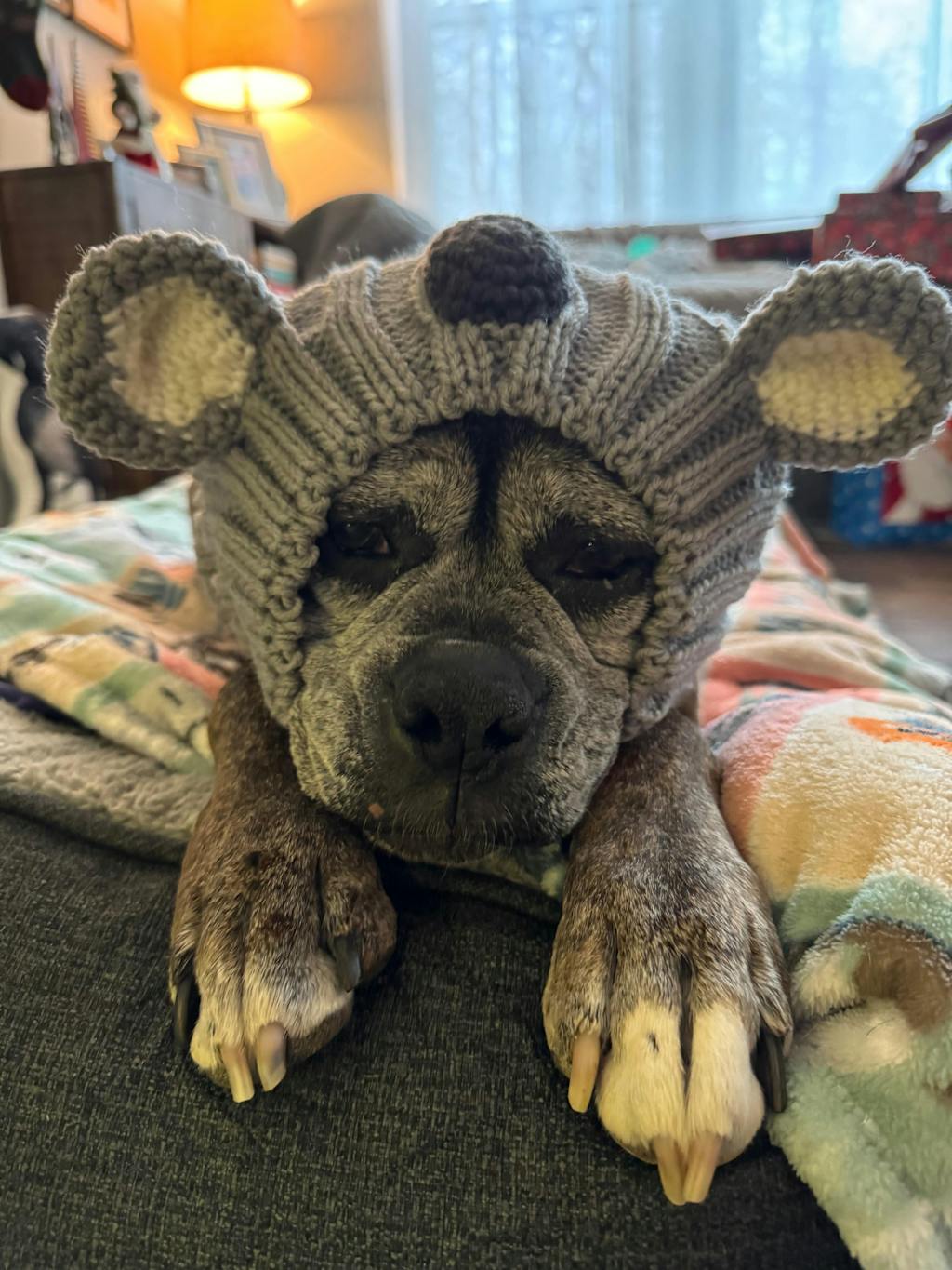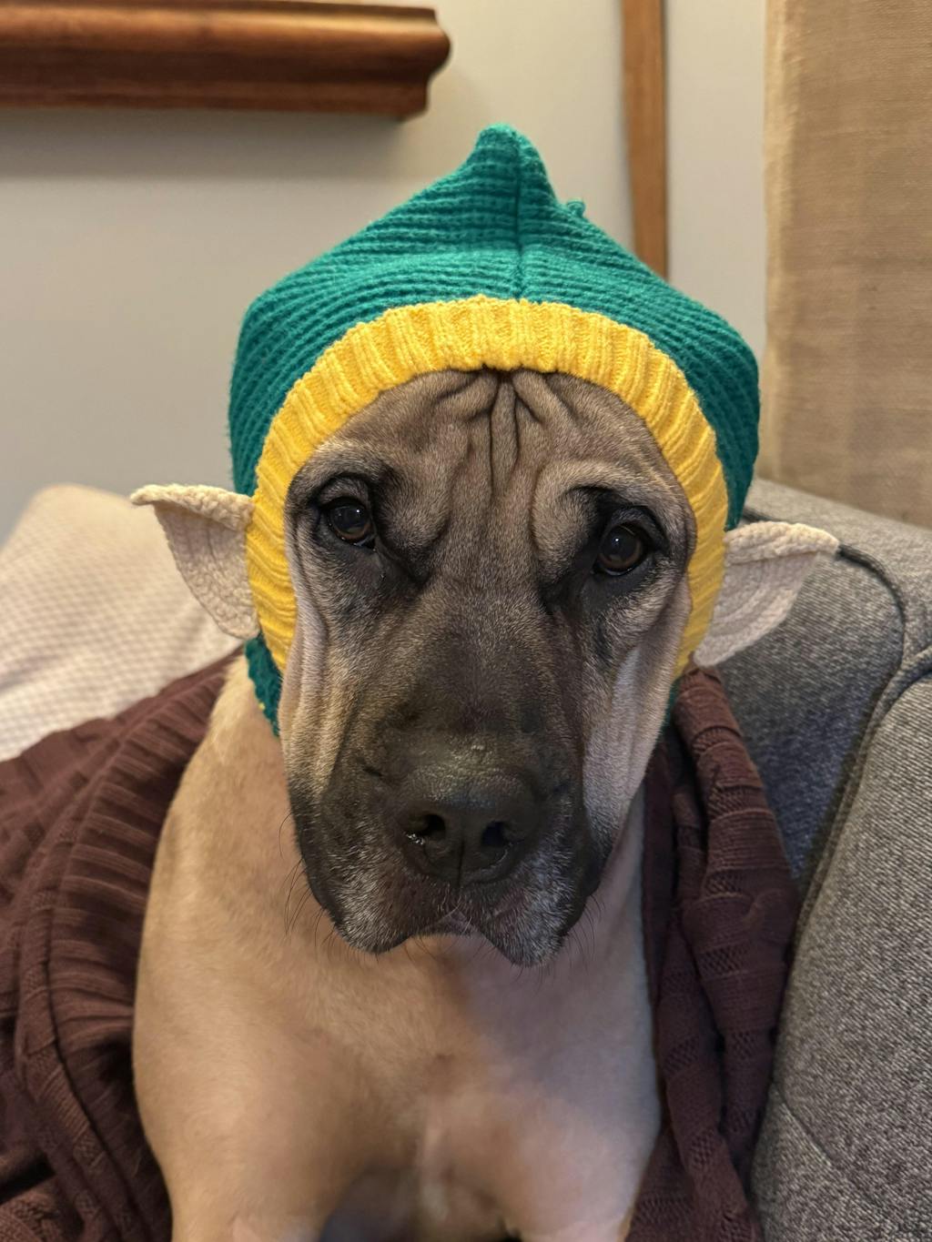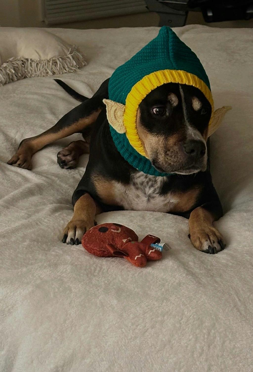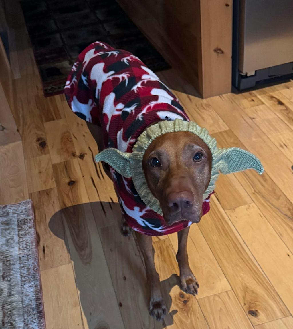 Love this Elf Snood...bringing much merriment and laughs to so many people (and it keeps our pups ears warm in the snow and wind!)