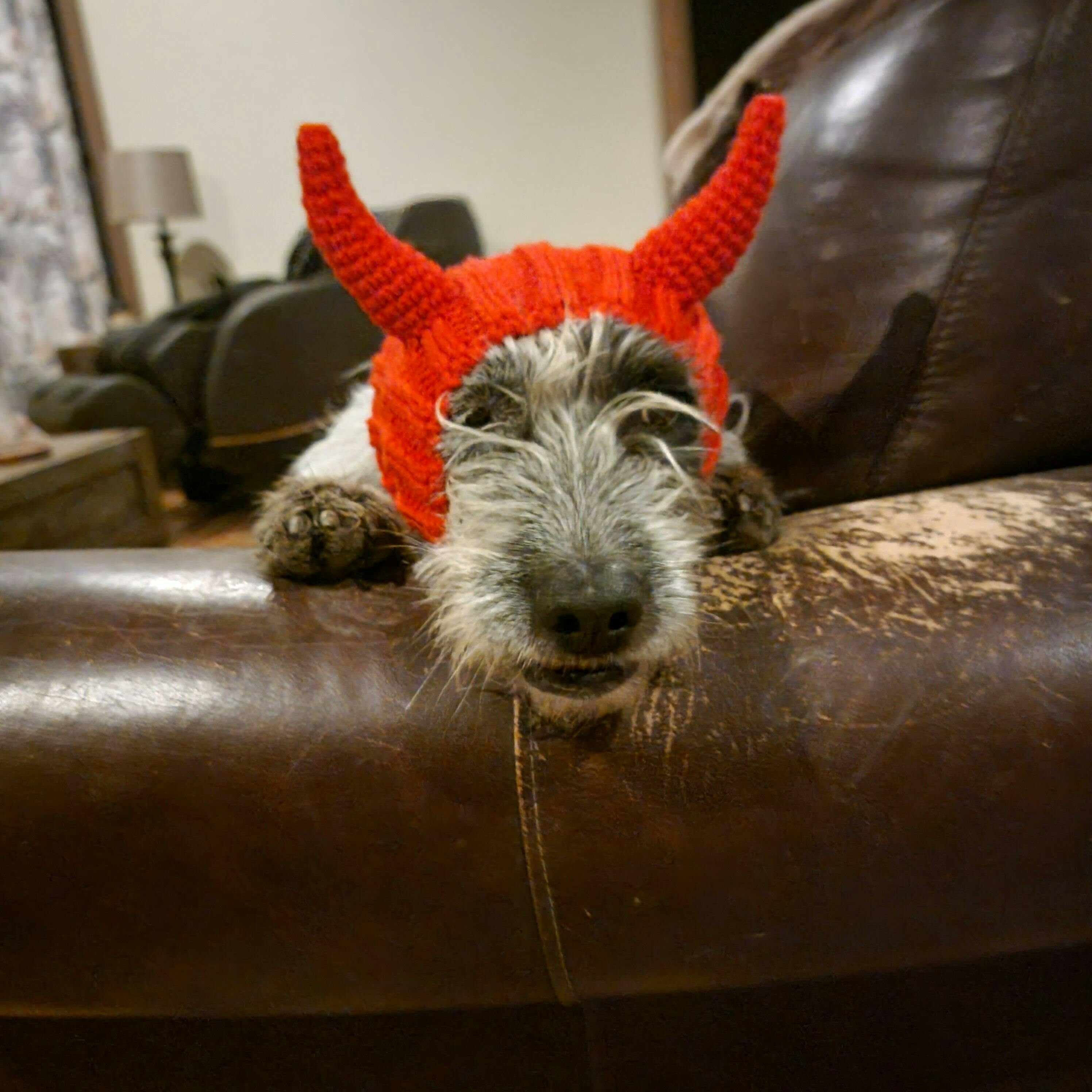 FIRST - what a well made snood! Nice quality, heavy weight yarn; the Grinch snood is soft & also well made. The attention to detail is amazing (they got the whisp of a green curl on the crown of the snood.) This is Diamond Lil, she loves her snood ♥️ 😈