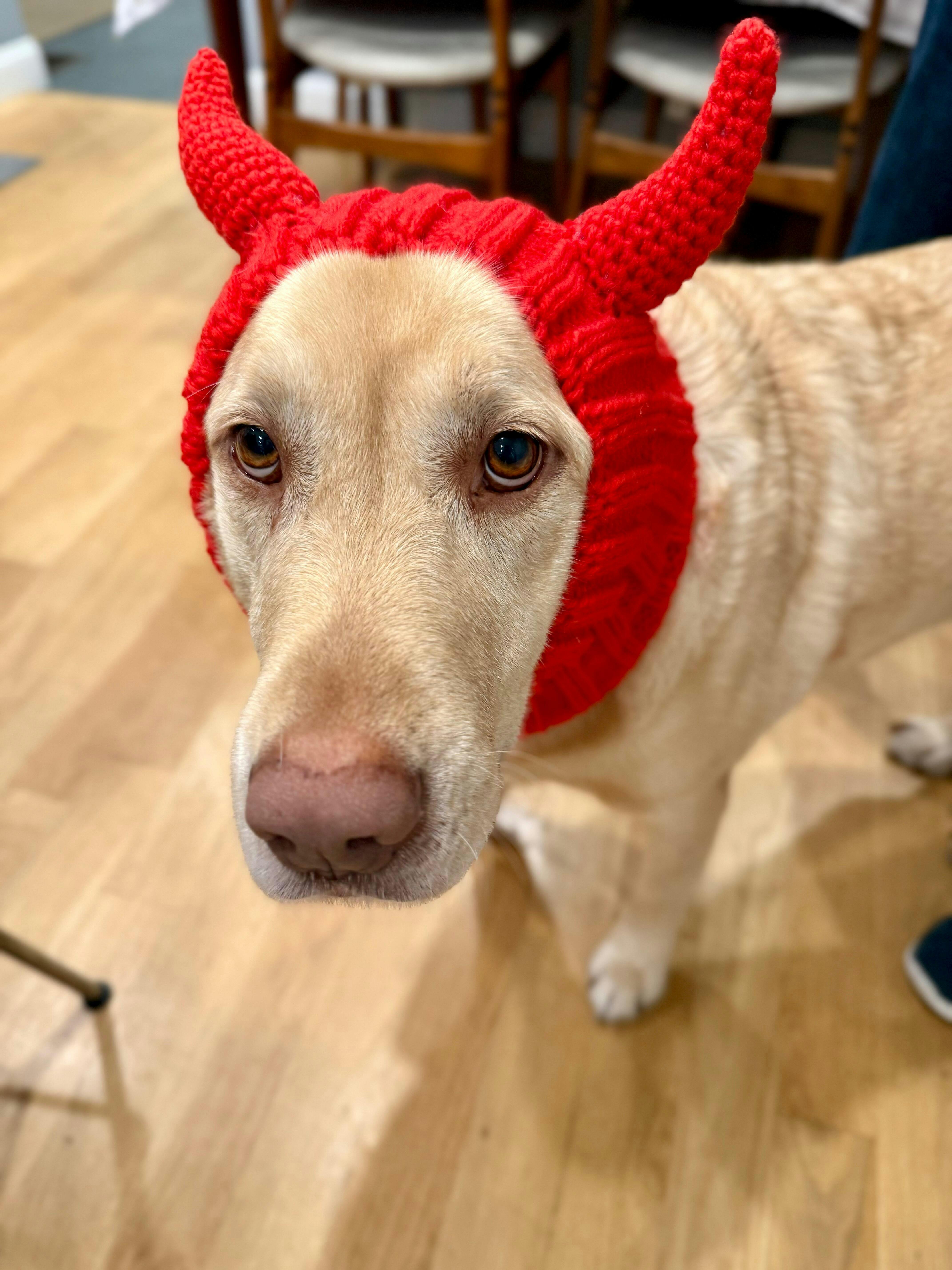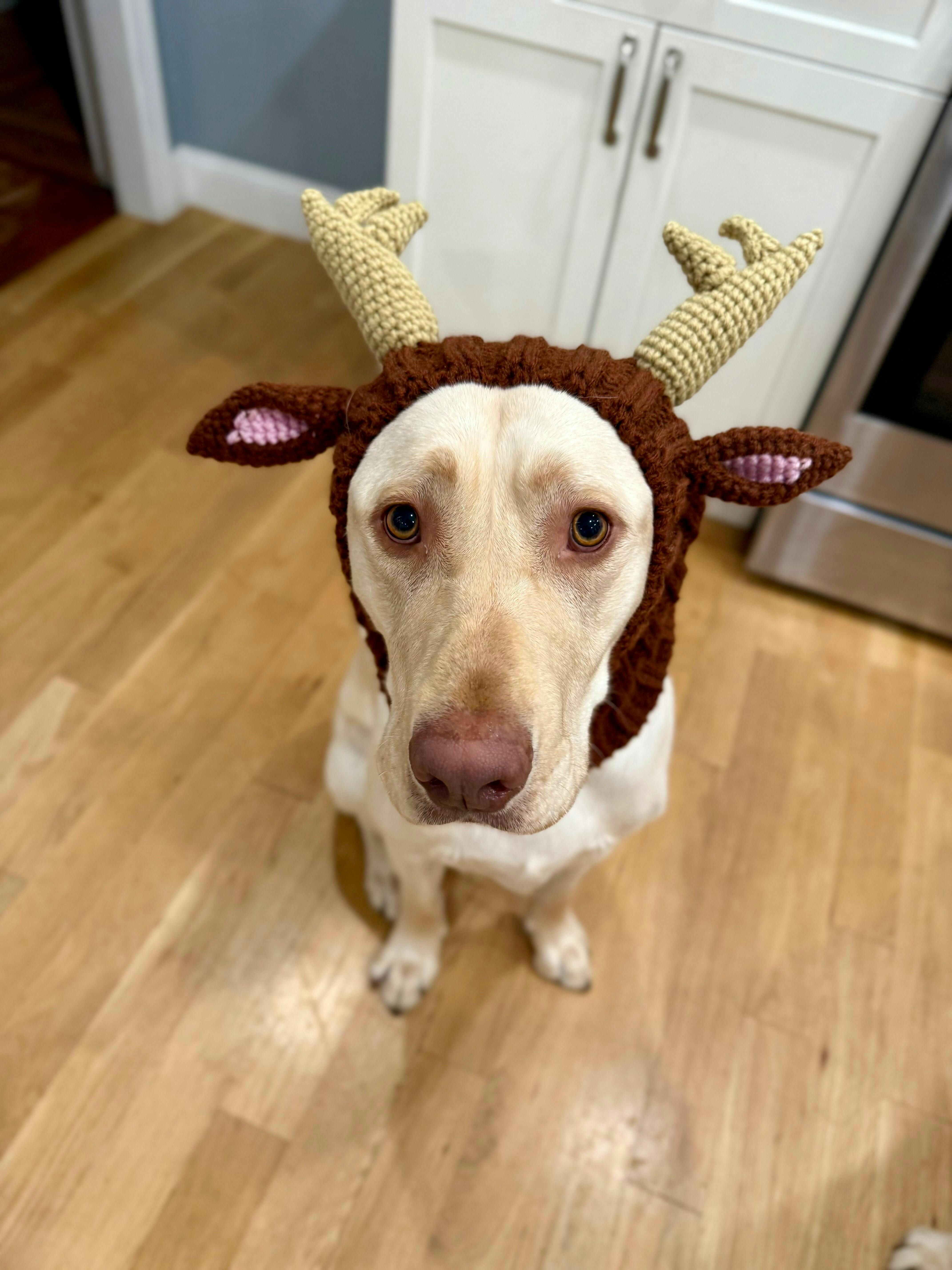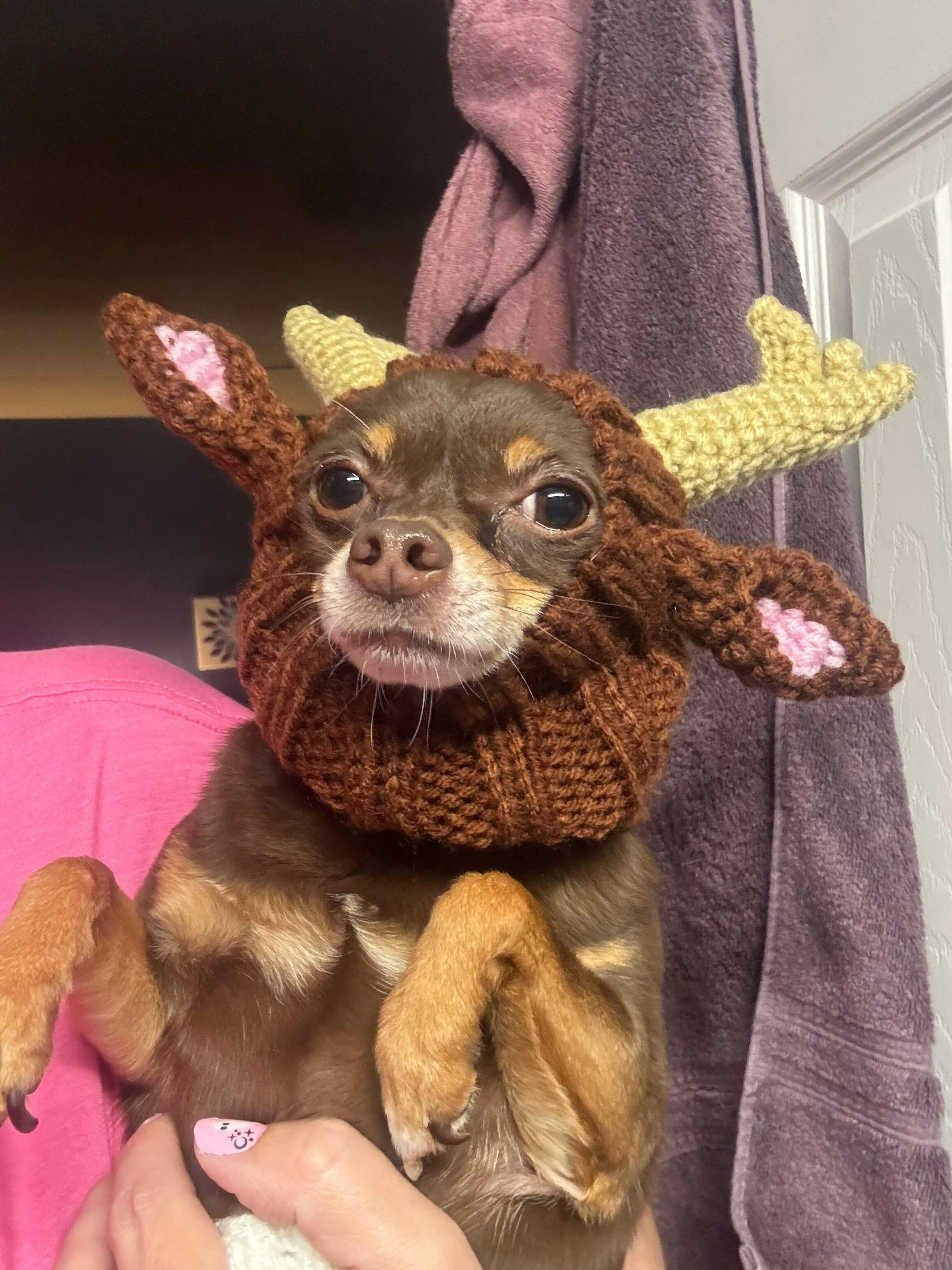 Got this for our little guy cuz he gets cold and he absolutely loves it, we almost have to fight hime to get it off. And it’s adorable to see him running around with antlers